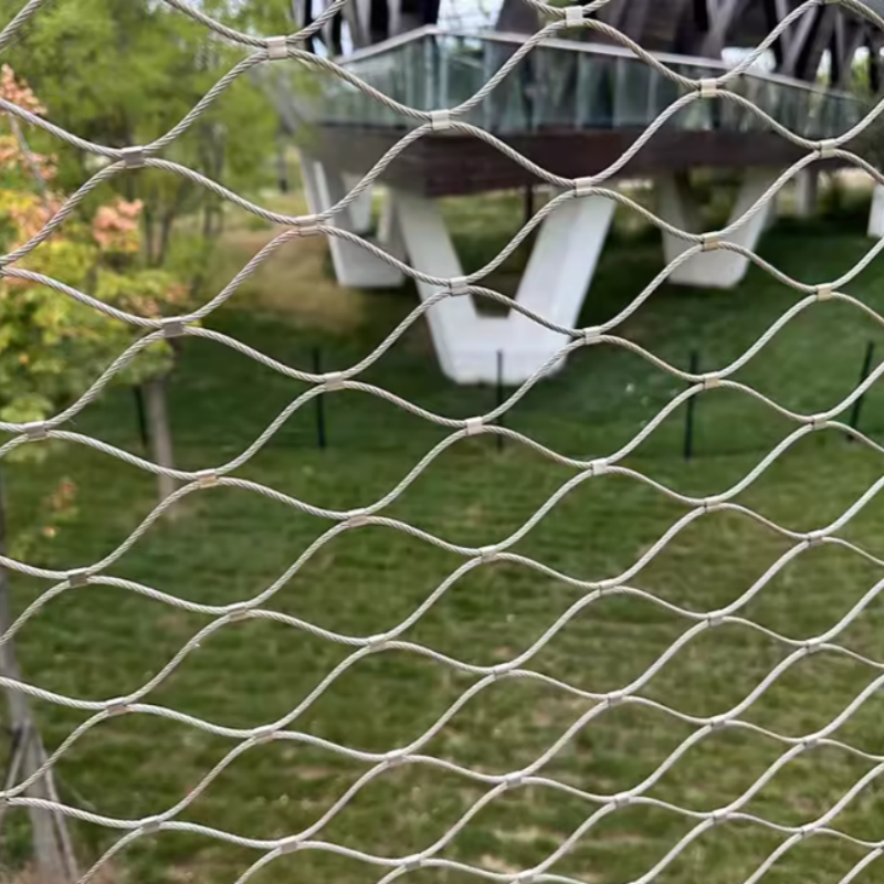 Εκτός από την αρχιτεκτονική, αυτό το πλέγμα συρματόσχοινων εφαρμόζεται ευρέως σε σενάρια ασφάλειας και προστασίας. Μπορεί να εγκατασταθεί ως προστατευτικά φράγματα σε ζωολογικούς κήπους, πτηνοτροφεία και περιφράξεις ζώων, εξασφαλίζοντας ασφαλή περιορισμό, επιτρέποντας παράλληλα το φυσικό φως και τον αερισμό. Η ευελιξία και η αντοχή του πλέγματος καλωδίων από ανοξείδωτο χάλυβα το καθιστούν κατάλληλο για χρήση σε συστήματα προστασίας από πτώσεις και κρεμαστές γέφυρες, όπου η ασφάλεια είναι υψίστης σημασίας.
